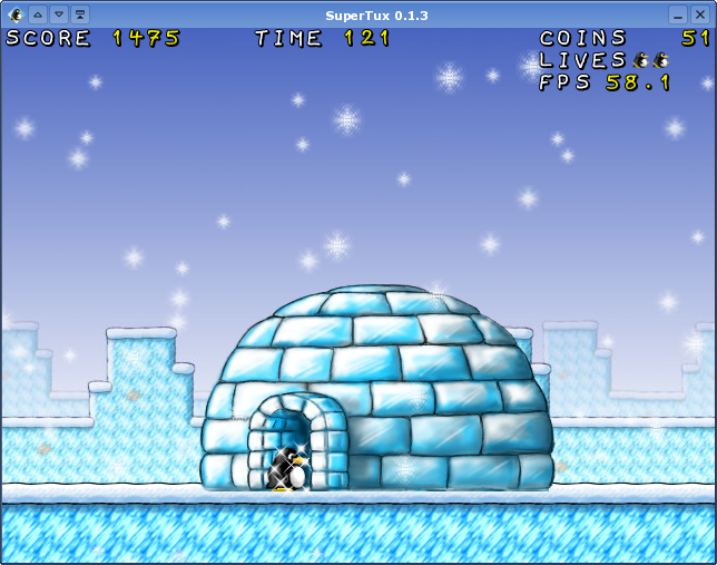 Lēkājamspēle. Jādzenā TUXis. SuperTux.