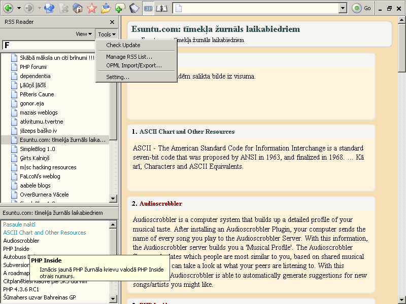 - 7) Jaunais FireFox RSS lasīkļa paskats gatavs.