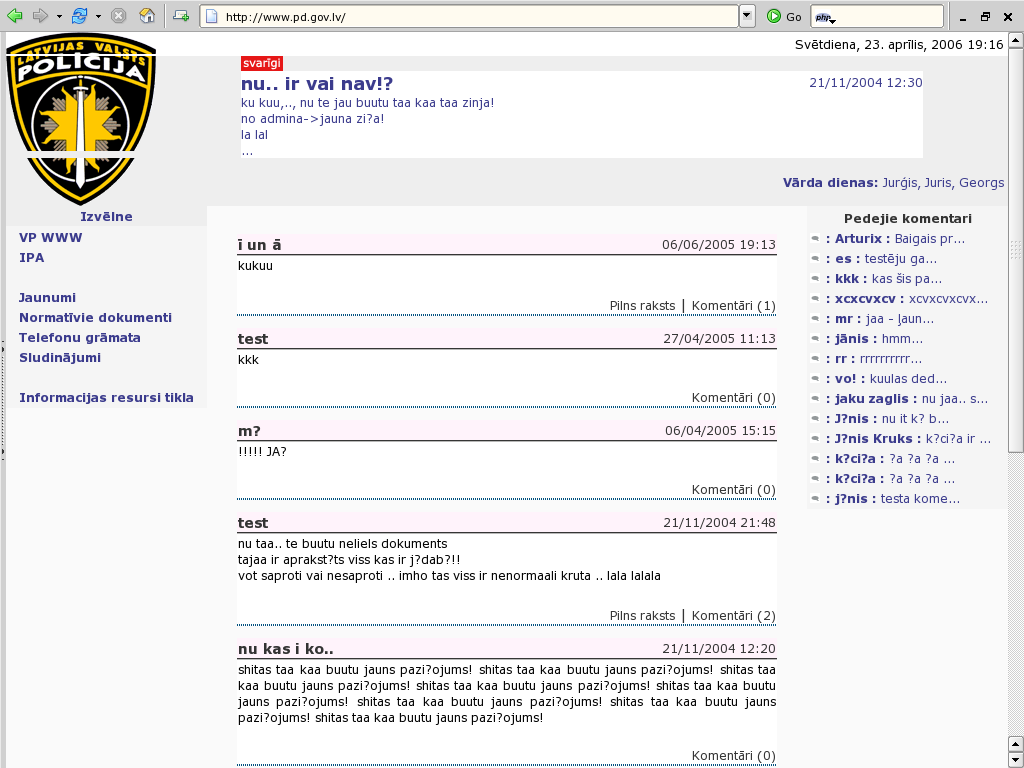 3. Dep [ Trešdiena, 2006. gada 26. aprīlis , 04:12:13 ] haiduks, izvēlies sev piemērotu browseri!! Māca te mūļķības, bl.