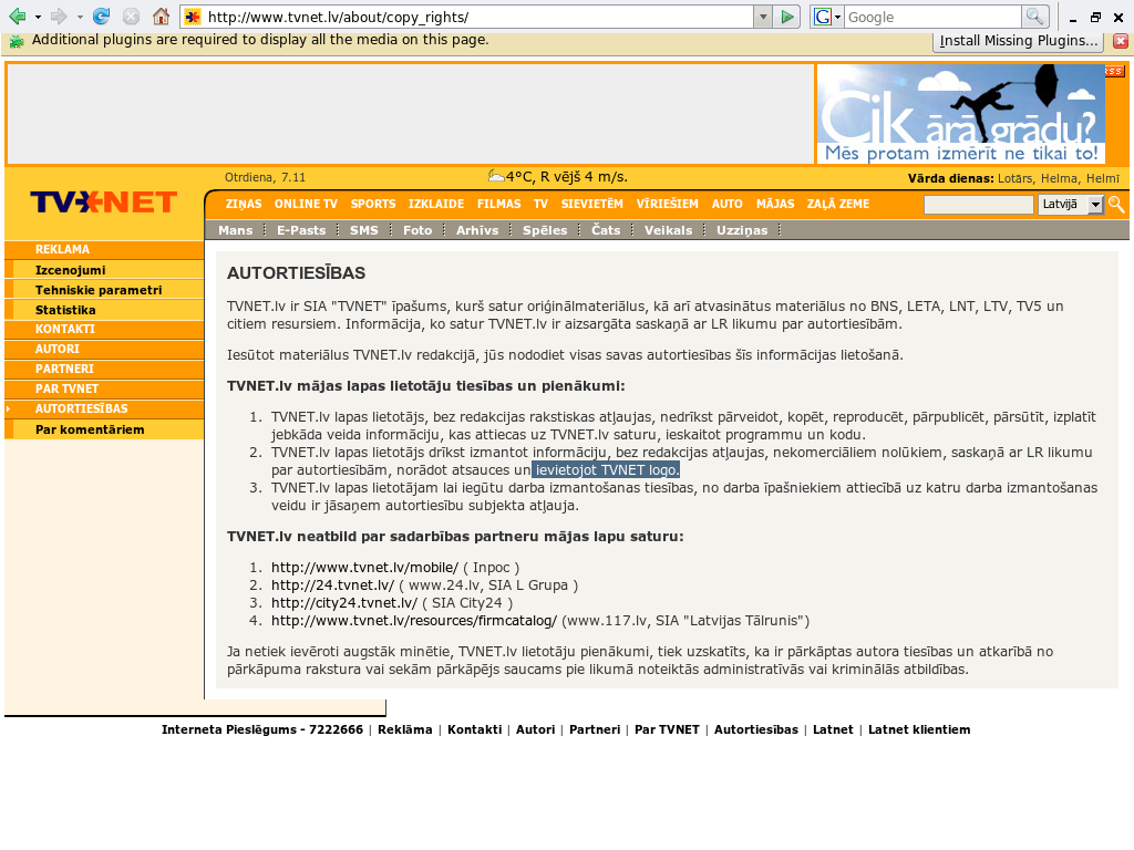 1. 0nkulis @ www [ Otrdiena, 2006. gada 7. novembris , 15:49:43 ] jā es šito biju domājis... eleganti ne? derētu uzrīdīt tvnetam etreidu?? :) aizsuutiishu webmaasteram epastu :)