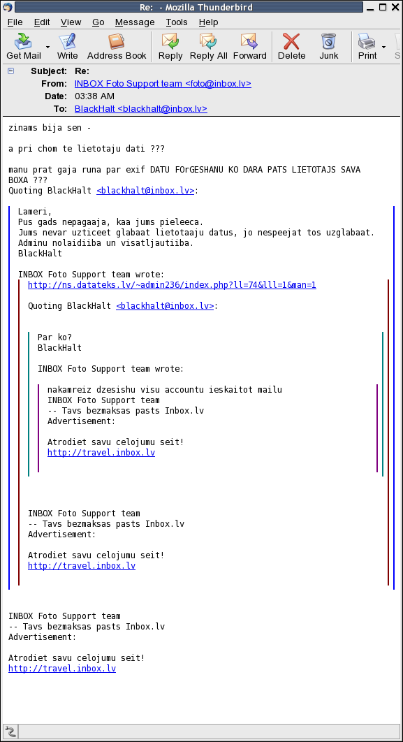 2) Te nedaudz paturpinājās sarakste ar INBOX Foto Support team,